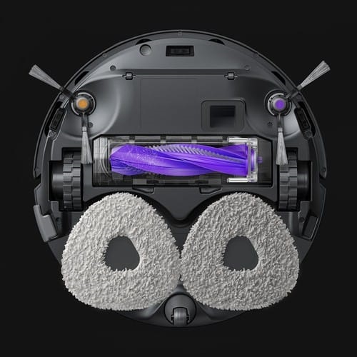 Mopul se ridică cu 12 mm pentru a evita contaminarea. Robotul maximizează apoi aspirația și folosește o metodă de curățare a matricei (curățați atât în direcția orizontală, cât și în cea verticală) pentru a îndepărta complet toate resturile și părul îngropat în covor.
